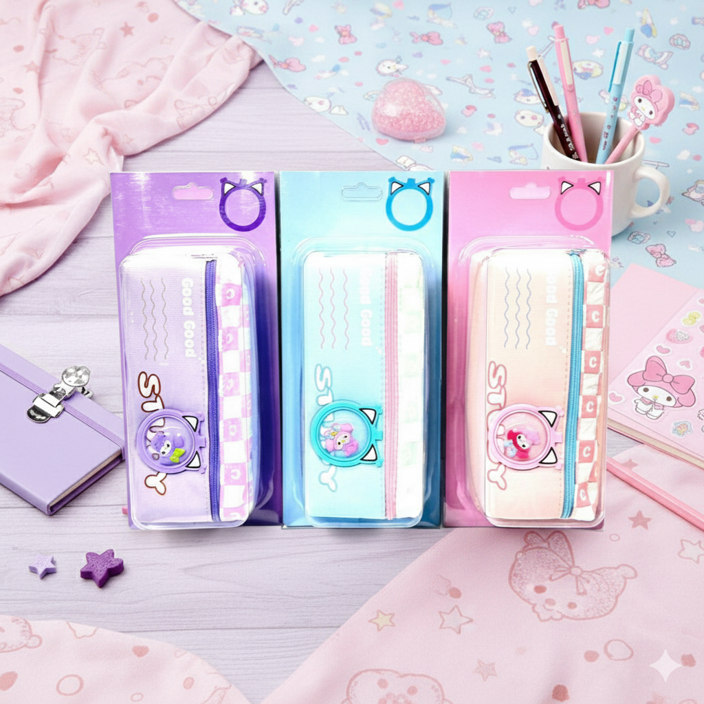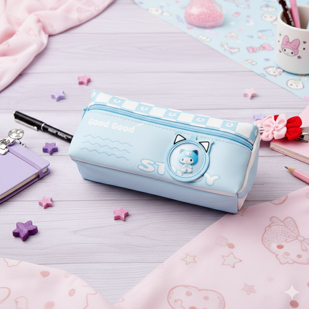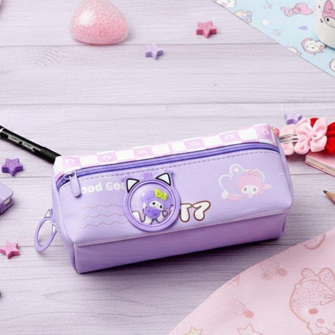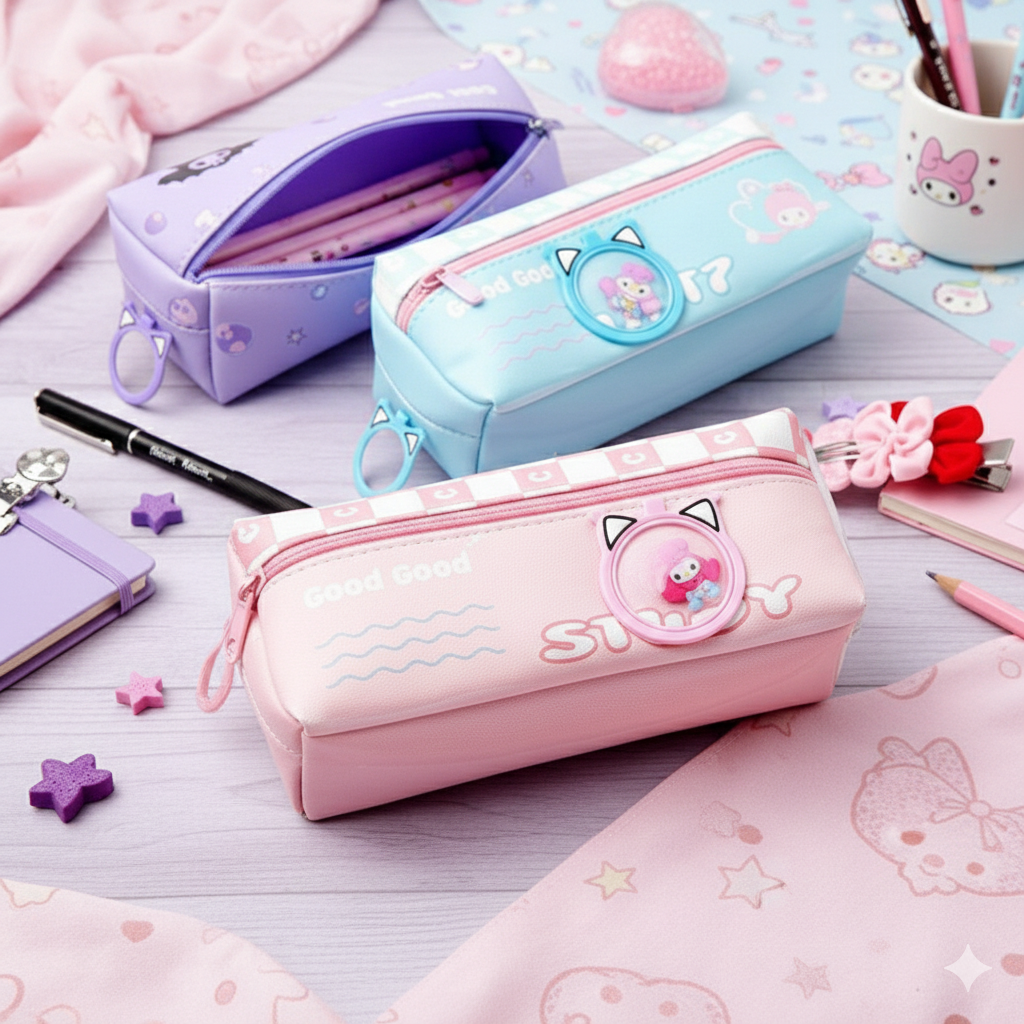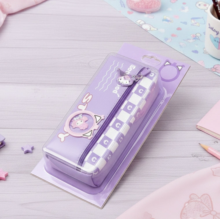 Kawaii Sanrio-Themed Aesthetic Pencil Pouch – Large Capacity School Stationery Organizer for Girls (Pink, Blue, Purple)