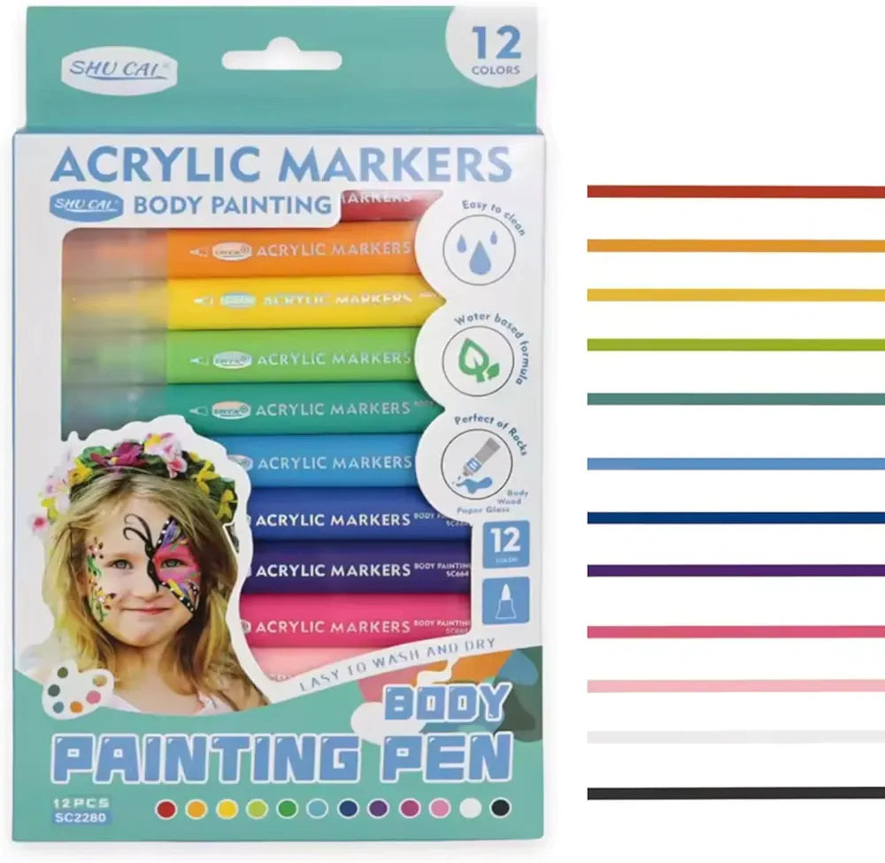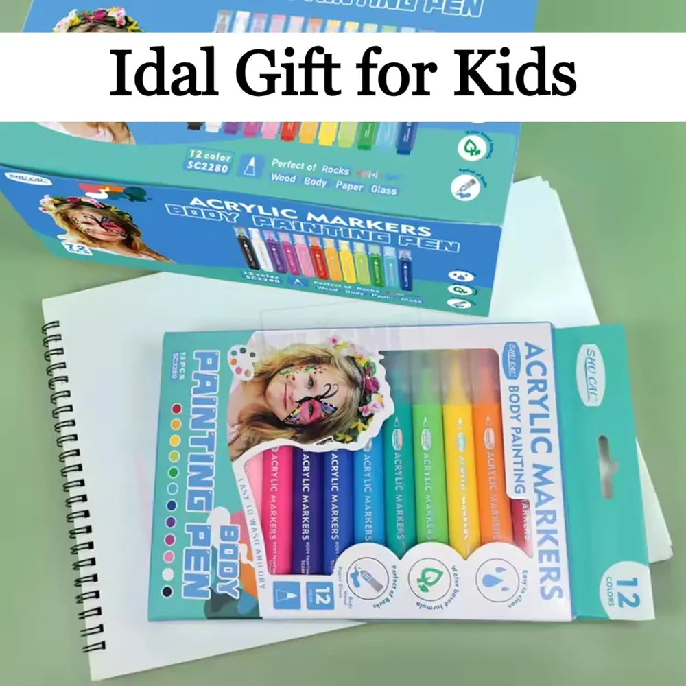 Premium 12 Color Acrylic Body Painting Markers for Kids | Washable & Non-Toxic – Kidzer Mania